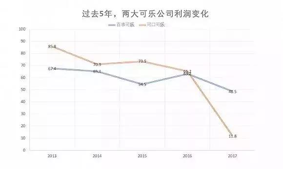 直到2017年結束,碳酸飲料下(xià)滑的(de)頹勢依然沒能得(de)到遏止。截止2017年12月(yuè)31日,可(kě)口可(kě)樂(yuè)公司的(de)淨利潤爲11.8億美(měi)元,同比減少了(le)81%;百事可(kě)樂(yuè)的(de)淨利潤達到48.5億美(měi)元,也(yě)比上一年少賺了(le)23%。