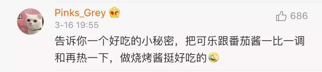 當然也(yě)有不少同學表示,可(kě)樂(yuè)還(hái)是很受歡迎的(de),隻是用(yòng)處好像跑偏了(le),萬能的(de)網友秀出可(kě)樂(yuè)的(de)各種用(yòng)法,包括但不限于:做(zuò)可(kě)樂(yuè)雞翅、燒烤醬、可(kě)樂(yuè)姜湯、沖廁所、暈車藥……