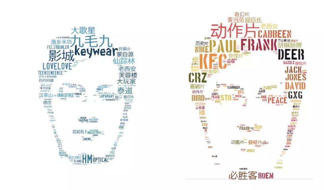 這(zhè)是我在線下(xià)的(de)行爲軌迹。在店(diàn)裏停留時(shí)間越長(cháng)、走得(de)頻(pín)次越高(gāo),字越大(dà);我去的(de)越少,它就越小。