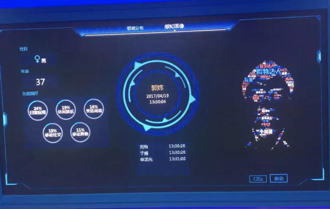 上圖這(zhè)個(gè)例子是易觀在長(cháng)沙的(de)研發中心做(zuò)的(de)試驗。先用(yòng)手機給自己拍(pāi)張照(zhào),然後走進智能大(dà)廳的(de)時(shí)候,就可(kě)以通(tōng)過人(rén)臉将你識别出來(lái)。因爲易觀大(dà)概有20多(duō)億的(de)用(yòng)戶畫(huà)像,所以當你進來(lái)時(shí),不僅知道你是誰還(hái)對(duì)你的(de)偏好、喜好更加的(de)清楚。